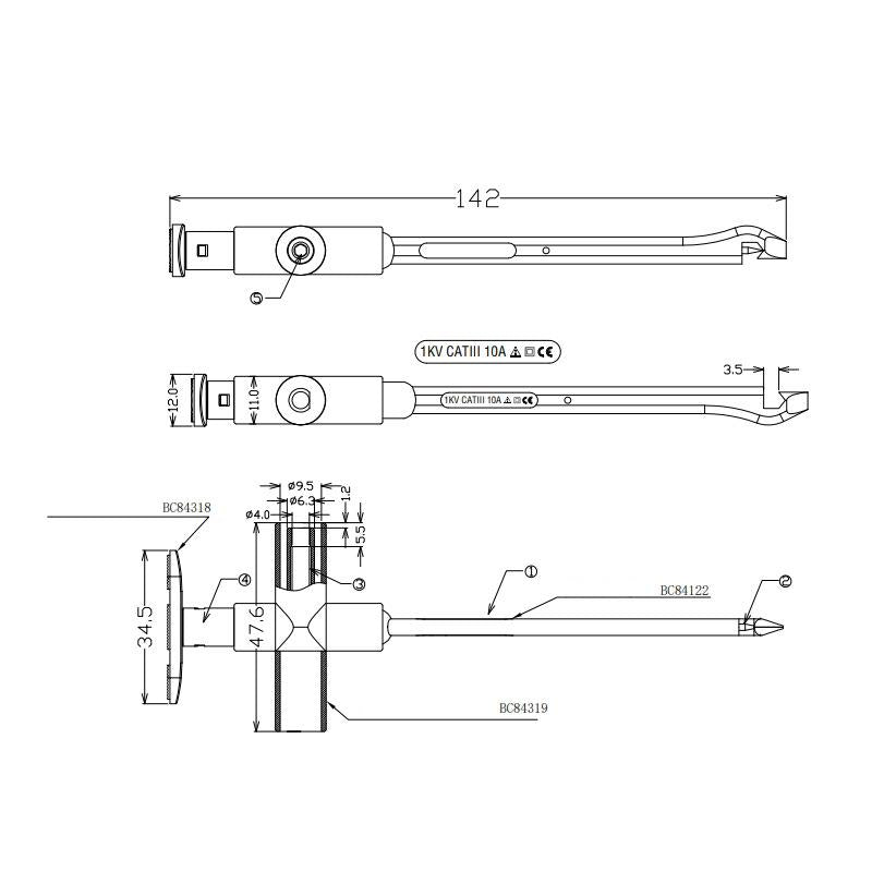 1. Material: The multimeter test probe is made of high-quality PA and stainless steel materials, which is easy to use, not easy to break or damage, and has a long service life