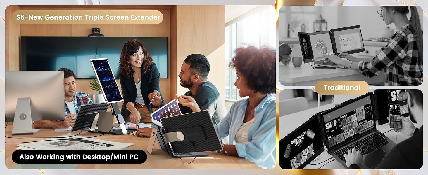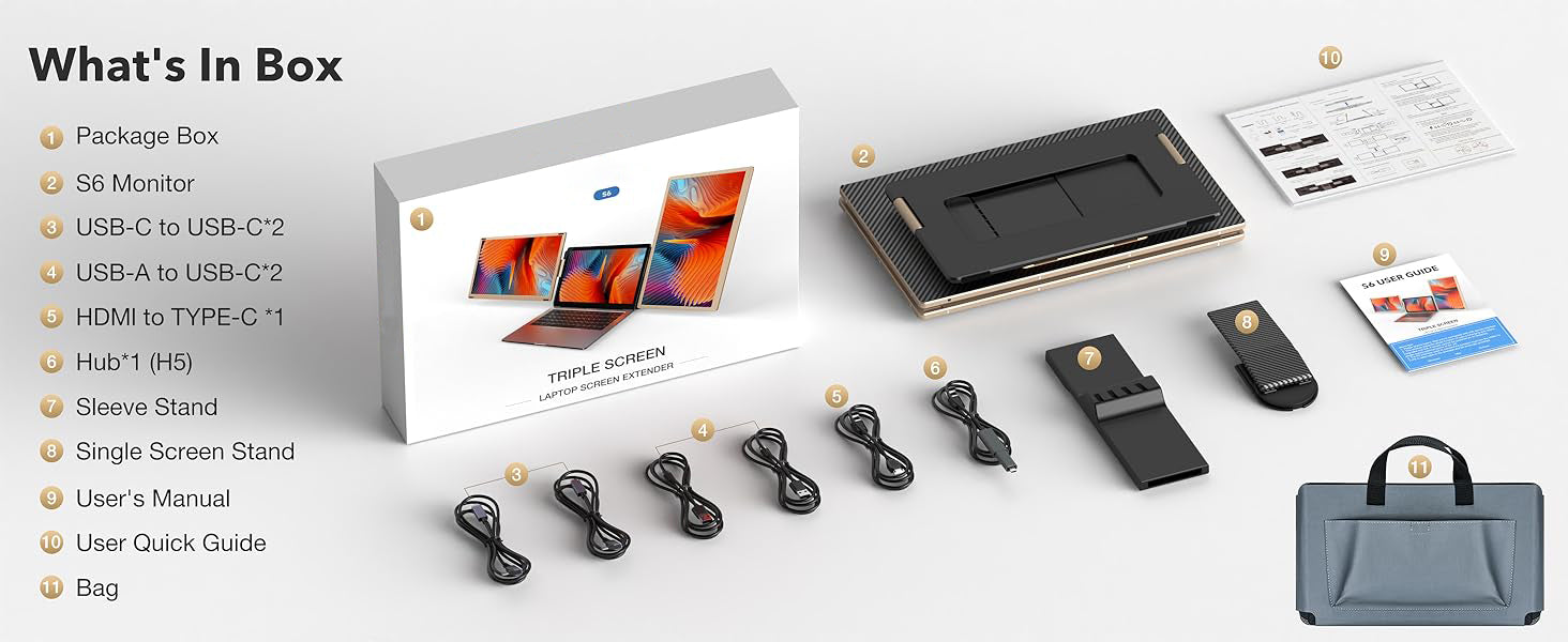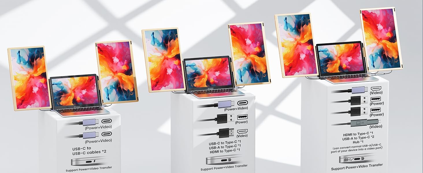 16 Inch 1200P S7 Laptop Screen Extender Portable Ultra Thin Triple Screen Portable Monitor for Laptop with H5 Cable
