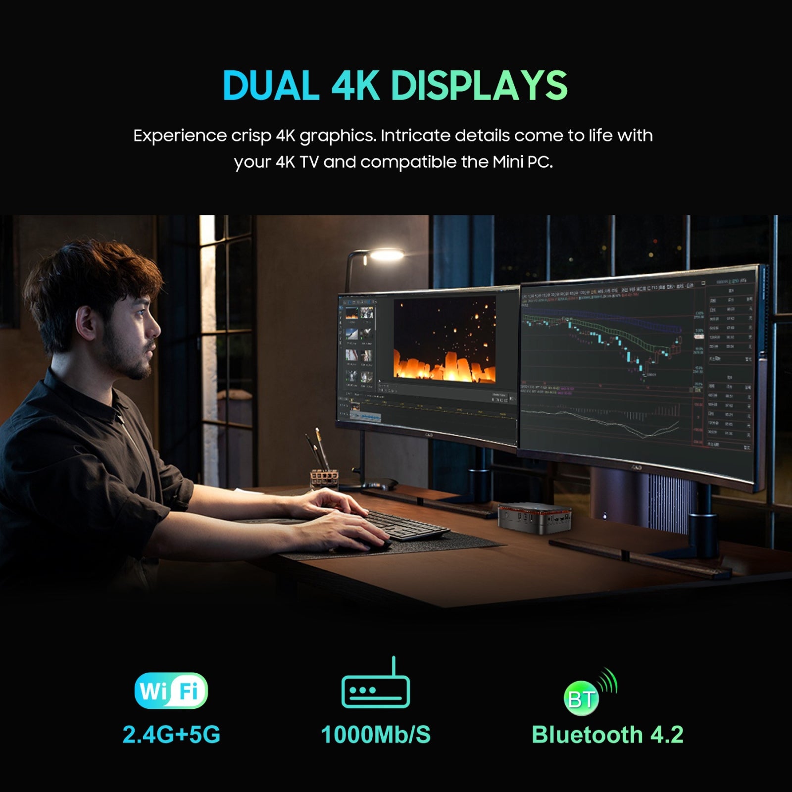5. UHD 4K Dual Screens Display Support: Mini gaming pc with Intel UHD Graphics shared graphics works well for 4K (60Hz) video, playing game and editing graphics. Display Port PC ports will allow you to hook up two monitors at up to 4K (60Hz), bring you different experience and increse your productivity.