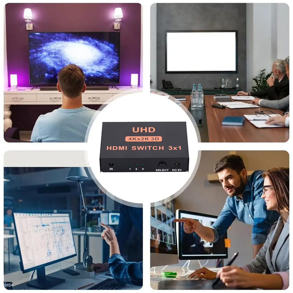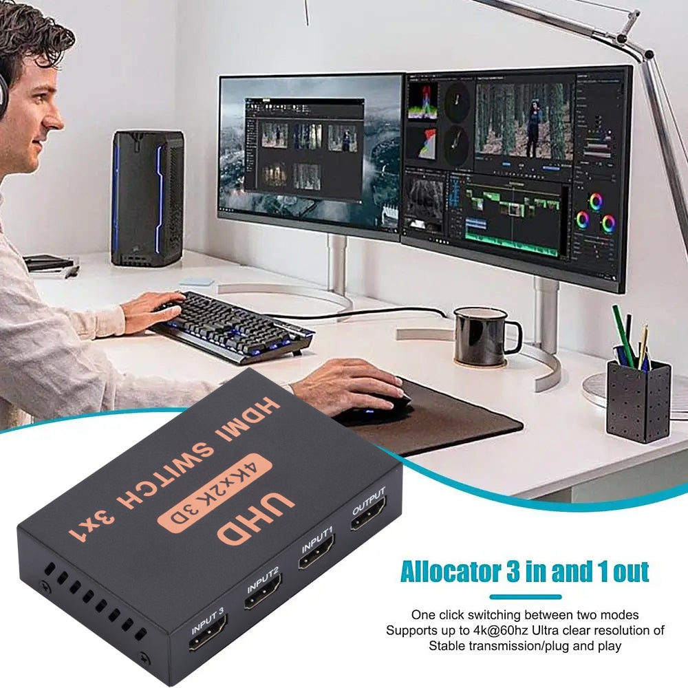 HDMI Switch 3 into 1 out 4Kx2K HD Video Switch, with Remote Control