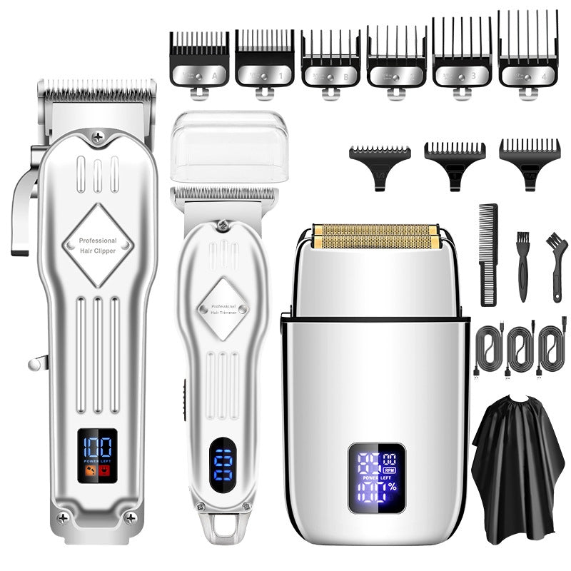 3pcs /Set Men Home Hair Salon High-power Hair Clipper(Silver)