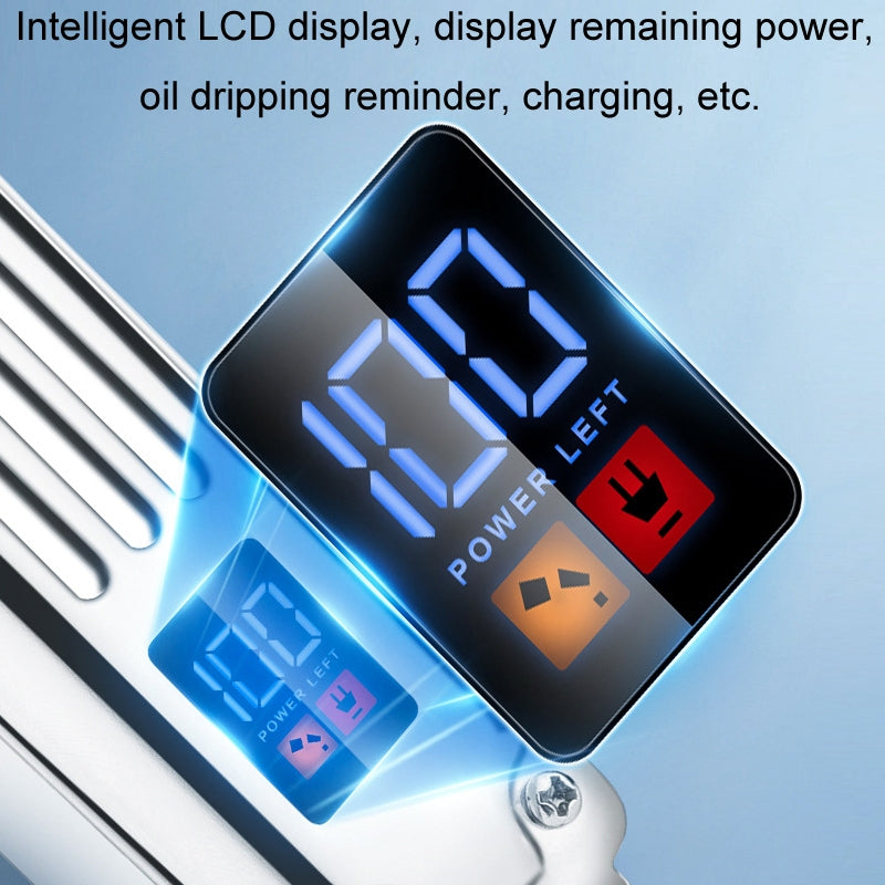 11. Smart LCD display, showing remaining power, oil dripping reminder, charging, etc.