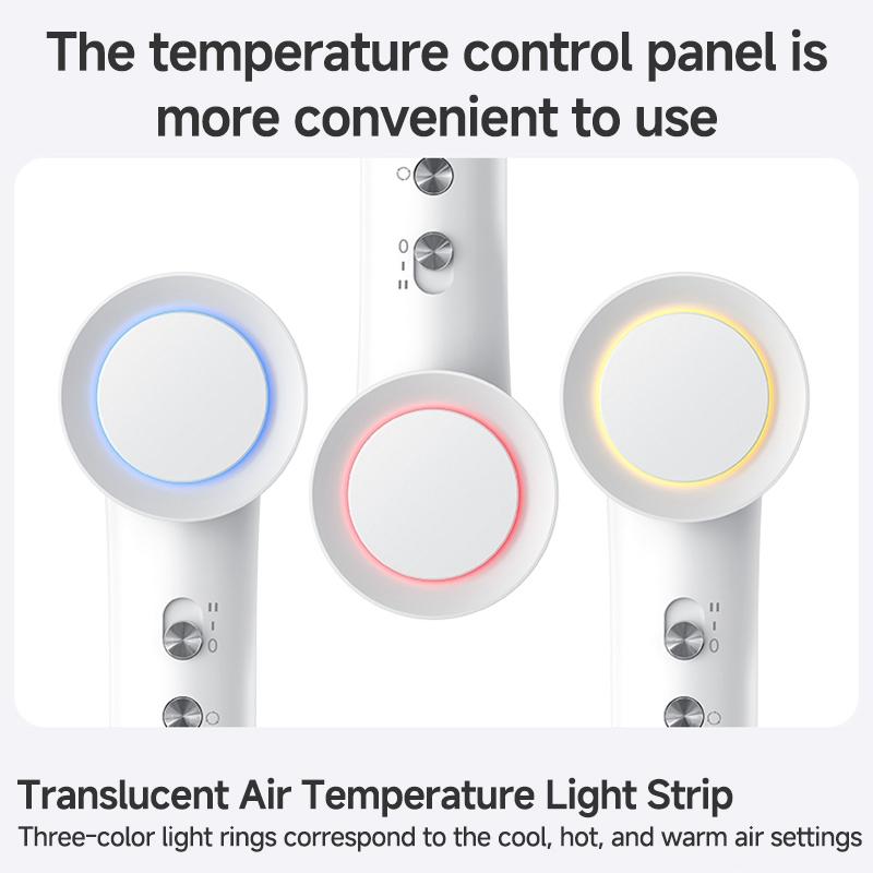 5. Three-color indicator lights correspond to cool, warm, and hot air settings.
