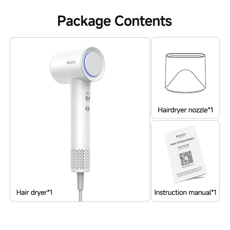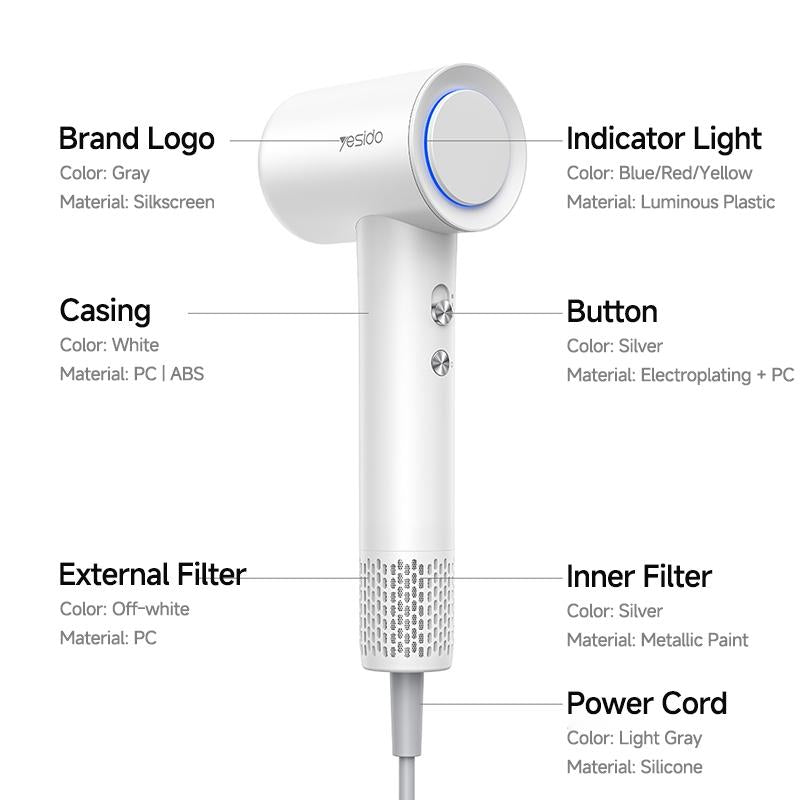 Yesido MG22 1500W High Speed Electric Hair Dryer, Plug:EU Plug(White)