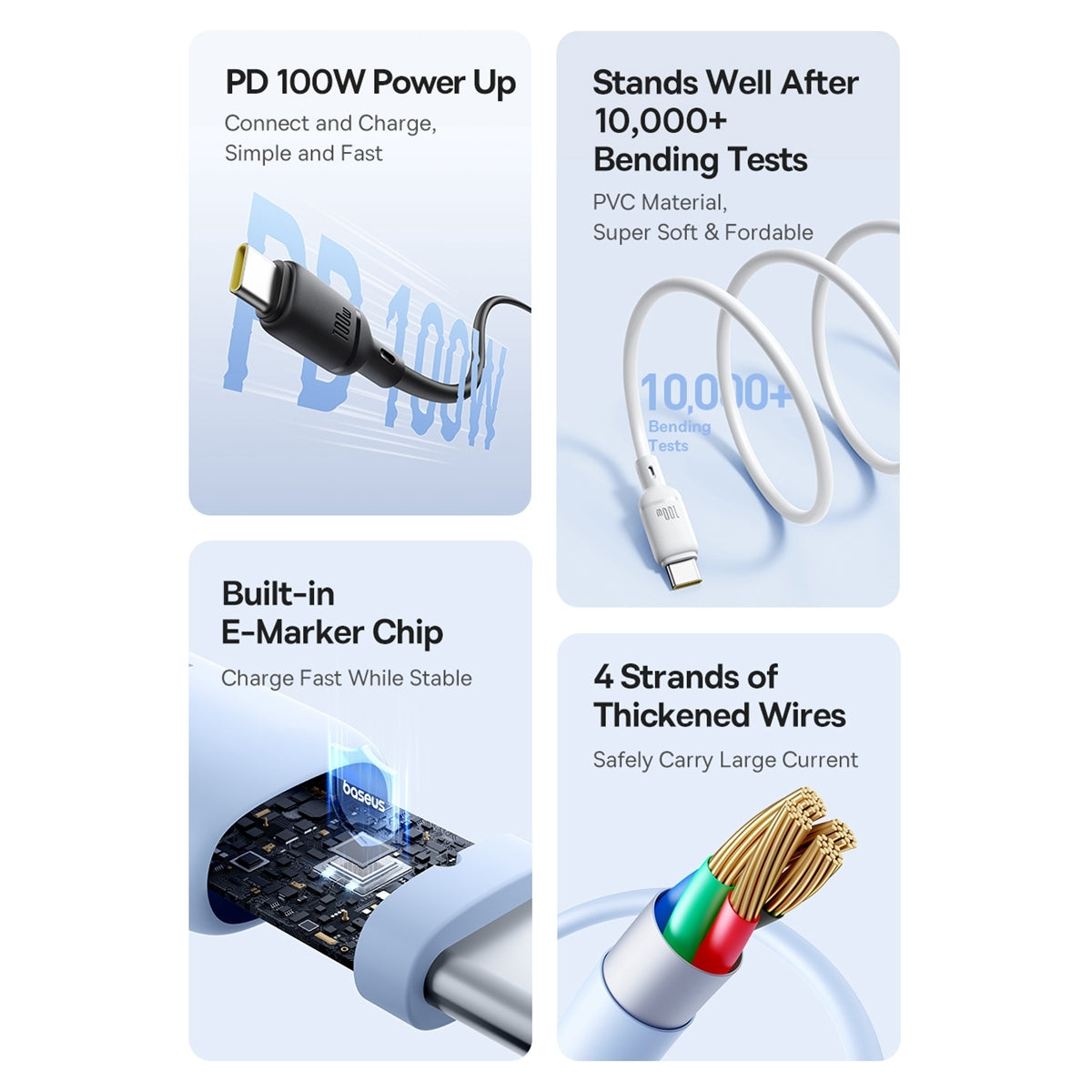 Baseus Silky Series 1m 100W USB-C / Type-C to Type-C Fast Charging Cable(Black)