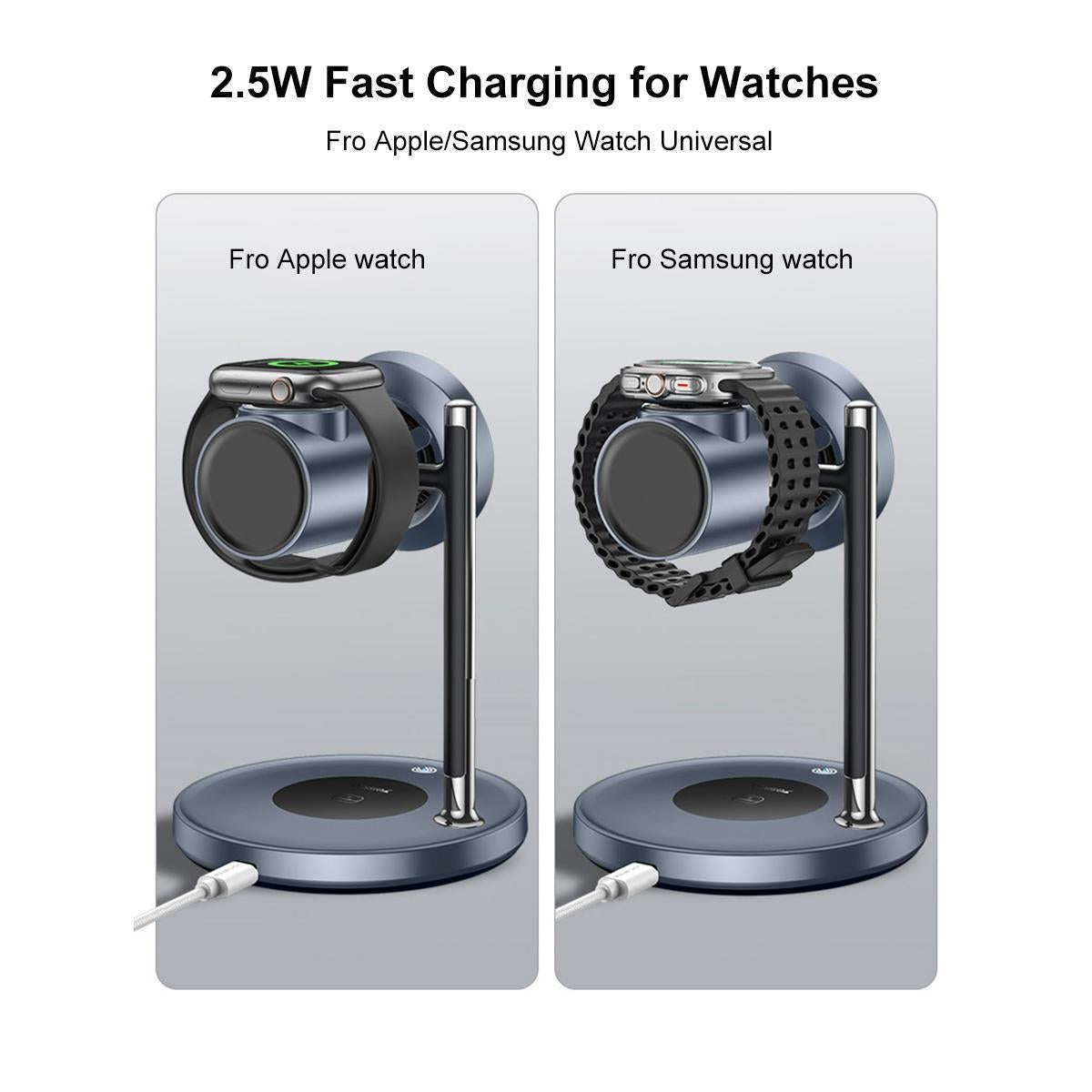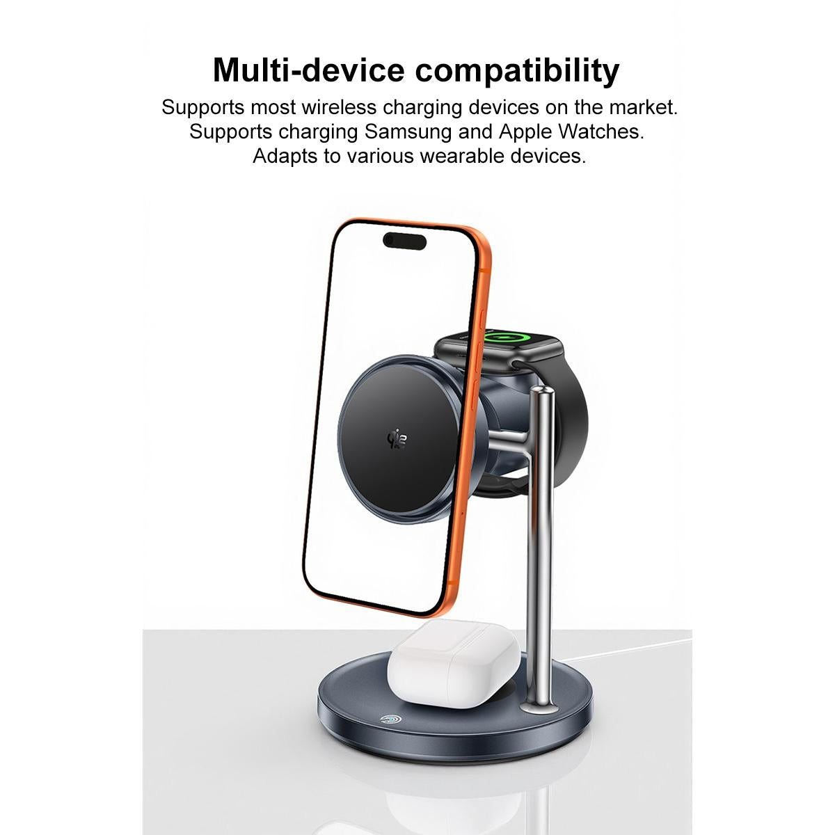 3. Supports simultaneous charging of multiple devices including phones, watches, and earphones.