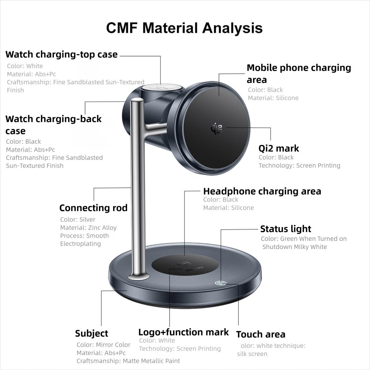 1. Qi2.2 wireless charger with 25W fast charging. Maximum output of 32.5W when input is 15V/3A.