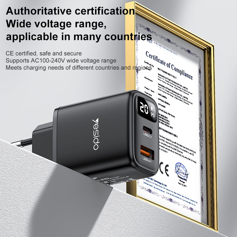 Yesido YC68 20W USB-C / Type-C + USB Digital Display Charger, Specification:EU Plug(Black)